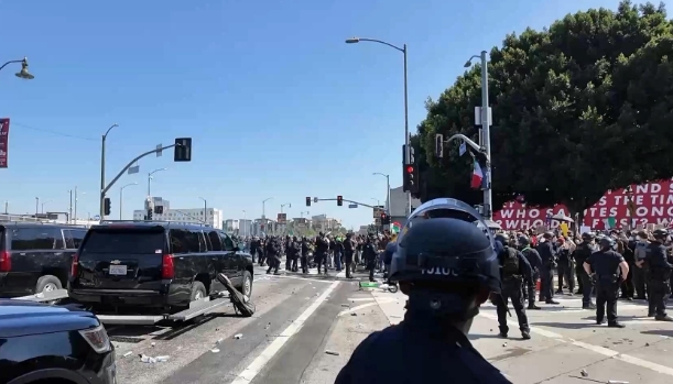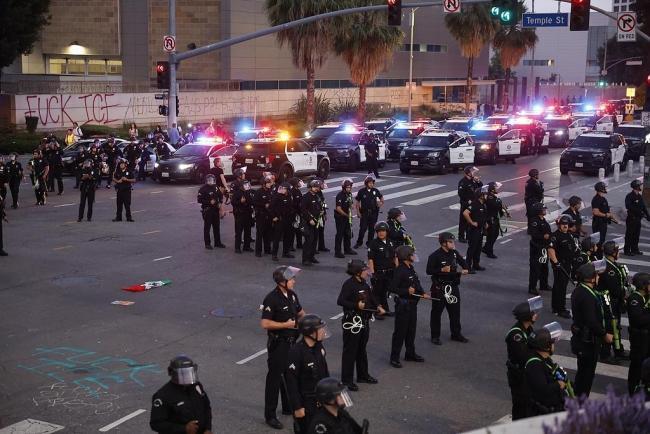 数百人被捕 阴谋论盛行 这一夜全美抗议活动愈演愈烈宵禁生效后,洛杉矶多条地铁和公交线路涉宵禁区的站点一度临时关闭。洛杉矶警方称,由于多个团体继续在宵禁区内举行抗议,警方已逮捕数十人。而在过去四天时间内,共逮捕了至少378人。