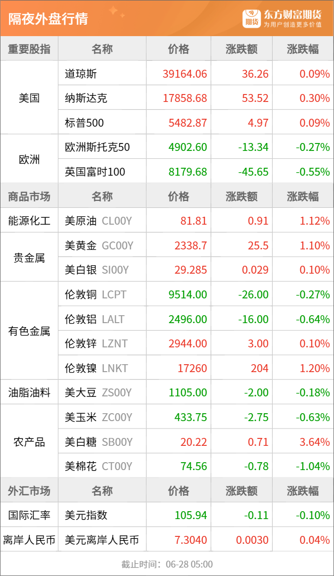 不锈钢:2024年6月27日,全国主流市场不锈钢89仓库口径社会总库存108.71万吨,周环比下降4.13%。其中冷轧不锈钢库存总量70.15万吨,周环比下降3.50%,热轧不锈钢库存总量38.55万吨,周环比下降5.26%。(我的钢铁网)