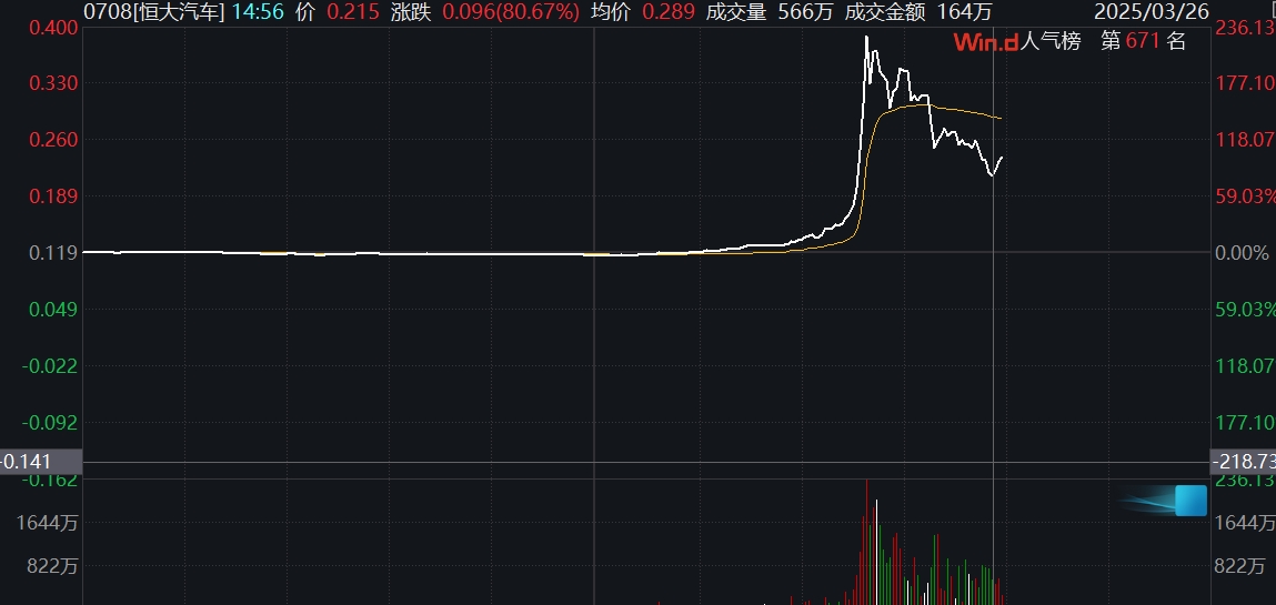 恒大汽车涨幅收窄至100%以内恒大汽车涨幅收窄至100%以内